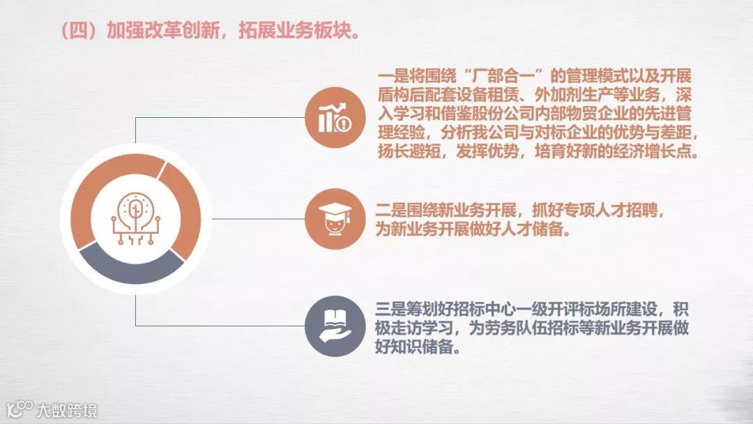 1月24日,在一届五次职工代表大会暨2019年工作会议上,中铁上海工程局集团物资工贸有限公司总经理张海涛作了题为《抓住新机遇 迎接新挑战 努力开创企业高质量发展新局面》的行政工作报告。报告回顾总结了公司2018年各项工作,客观分析了公司发展面临的机遇与挑战,并对2019年公司生产经营、改革管理等各项工作进行了详细部署。