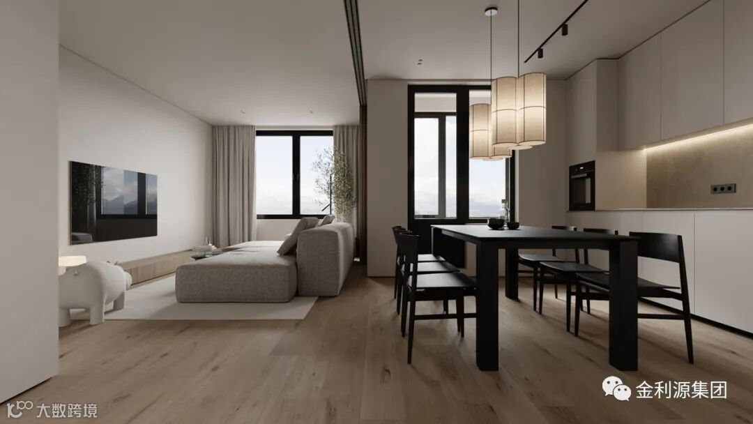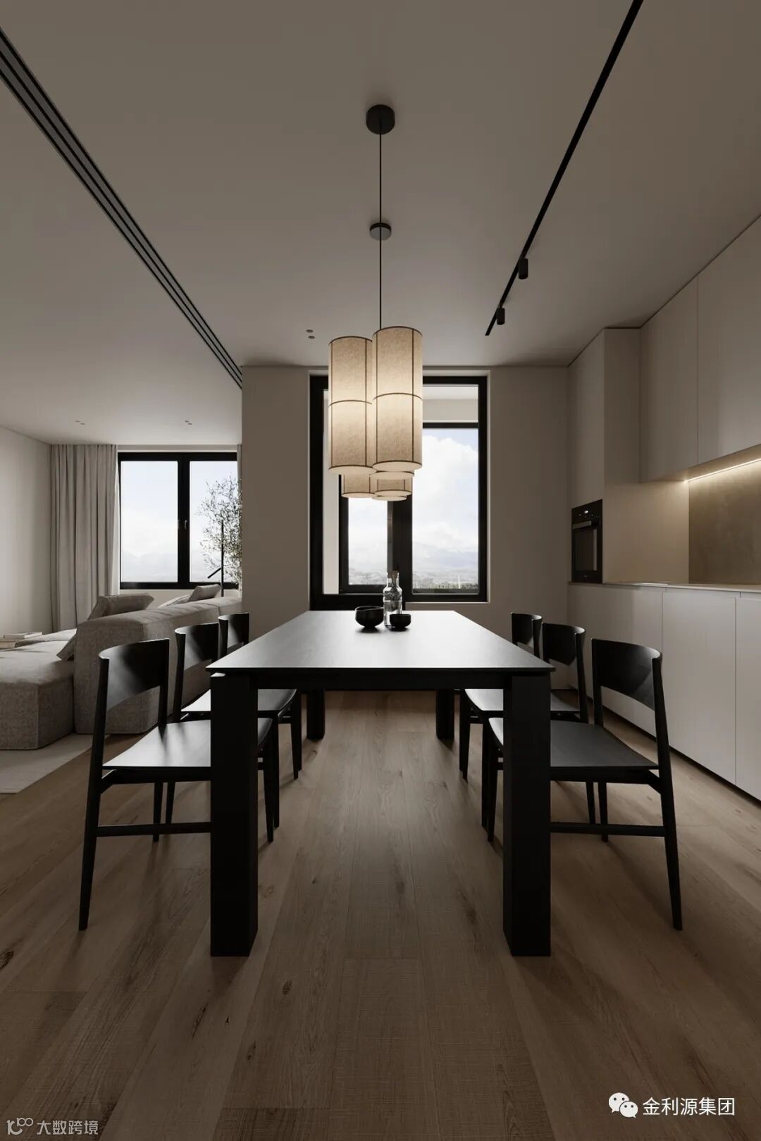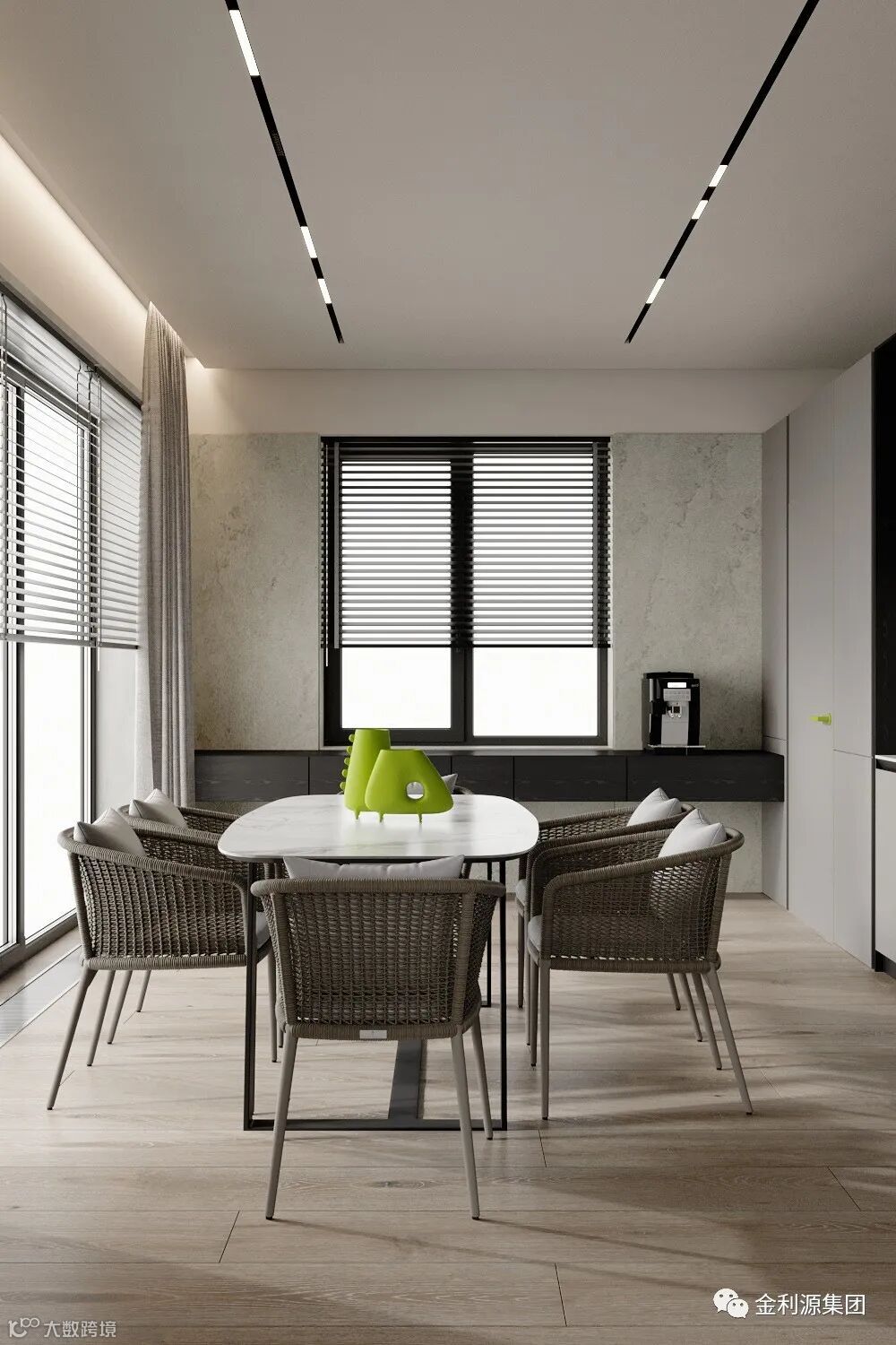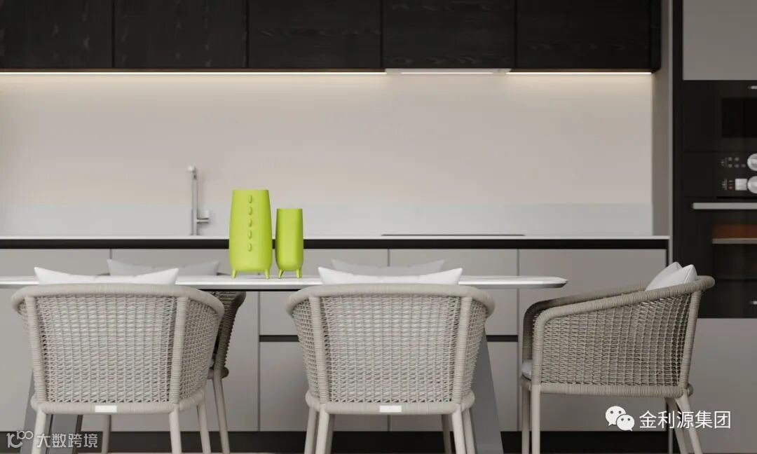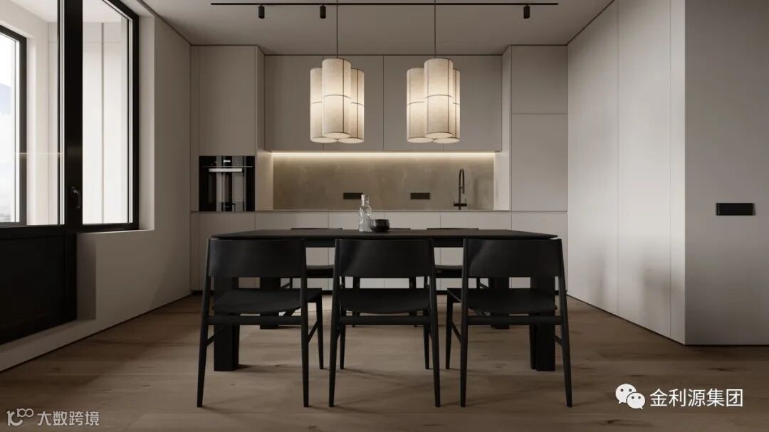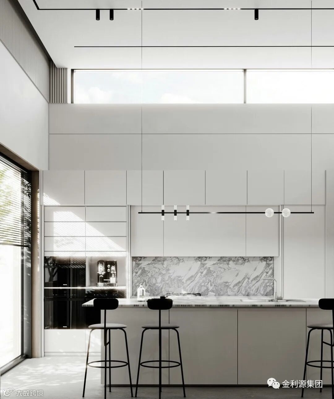 极简餐厨整体的设计,不在墙面,及预想构图上设计,而是以模型为中心的设计规划,空间的整体感强。