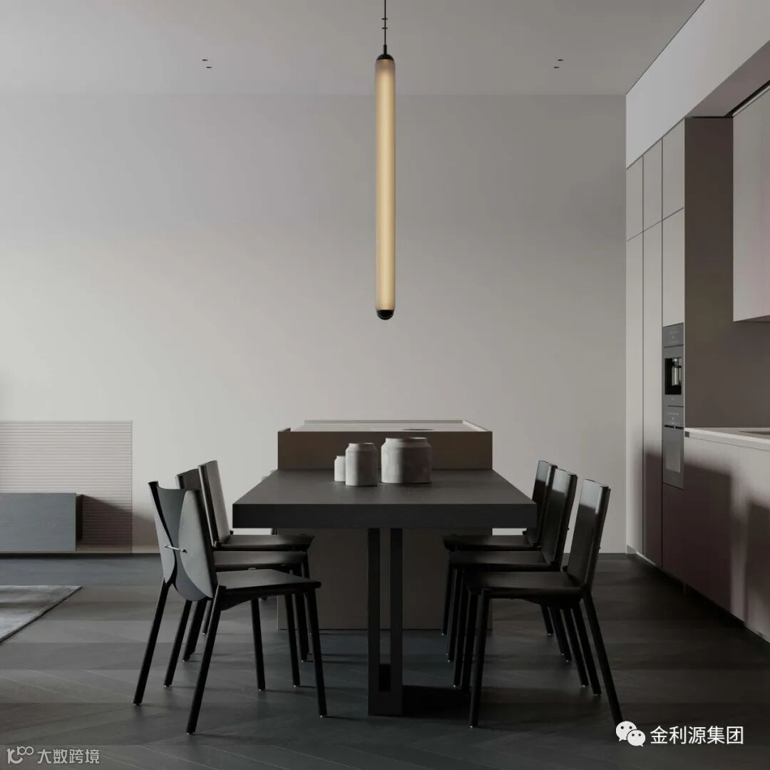 应用在餐厨当中也是一样,不再局限于某一个单独的空间而是更讲究家庭感和生活感。