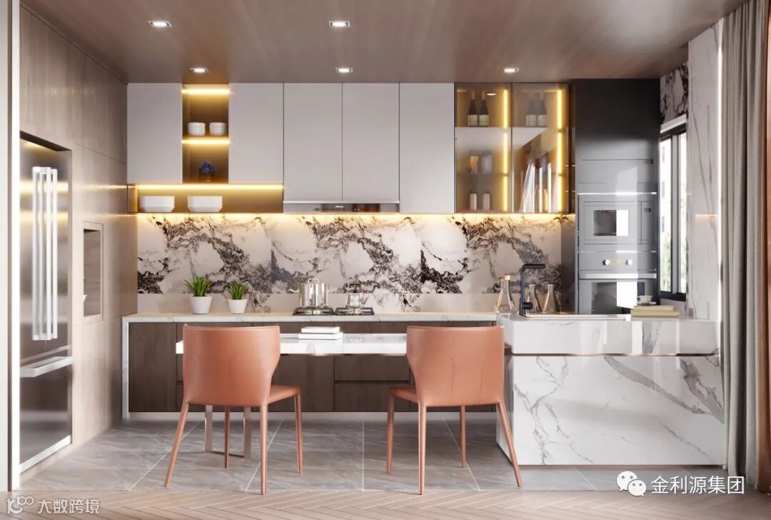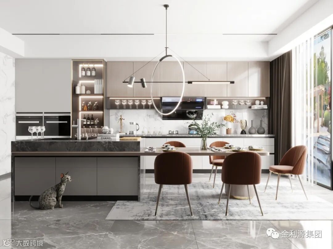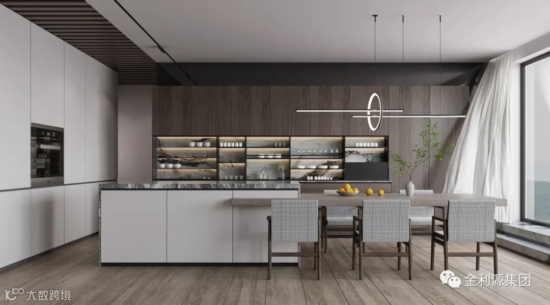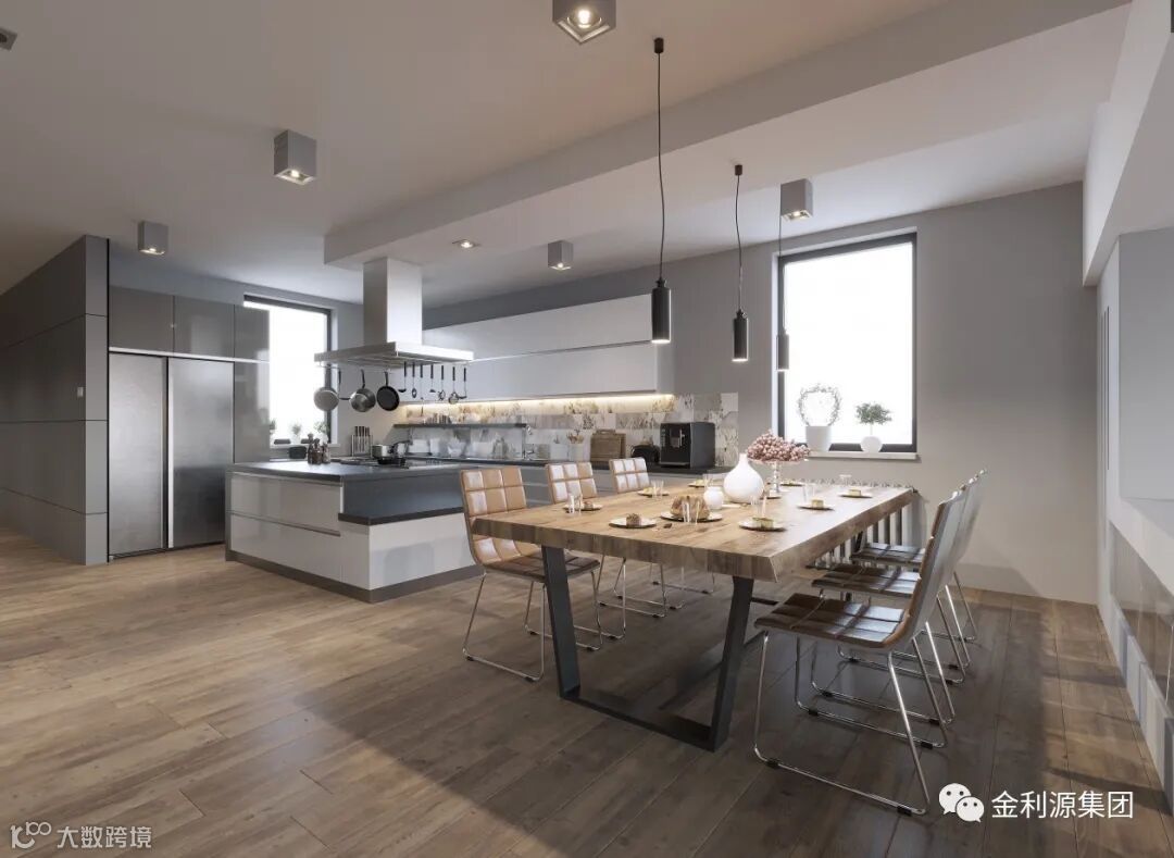 以往厨房、餐厅各自独立,家庭户型小就只能将客厅做餐厅。而现在,将餐厨结合设计,逐渐变成一种时尚,一方面节约了家庭空间,另一方面则能将空间规划更为统一。