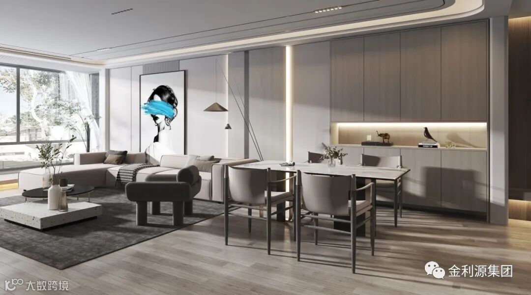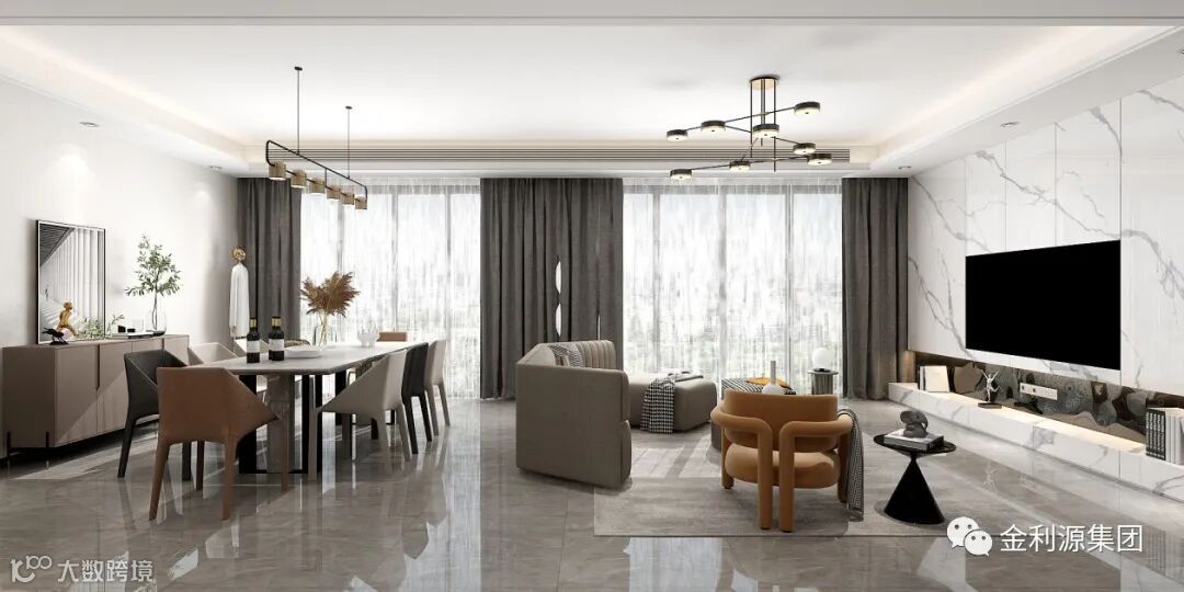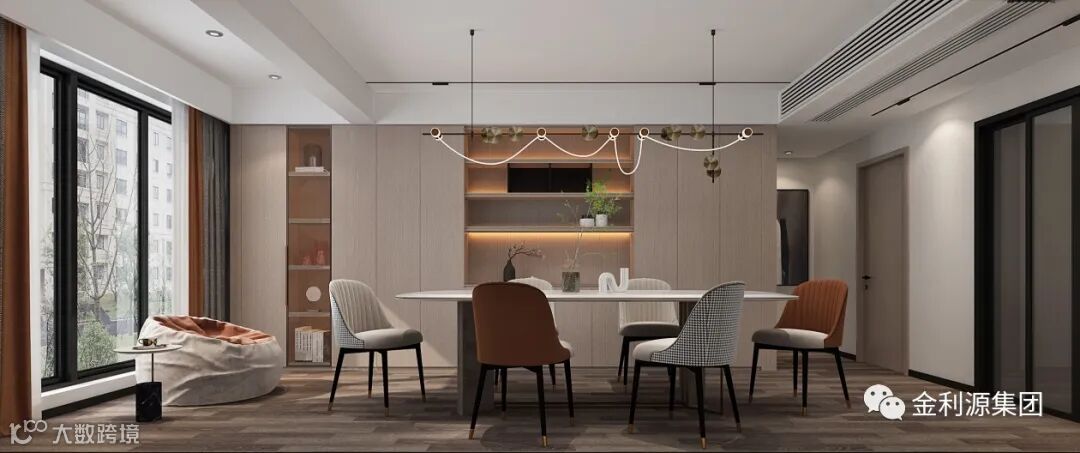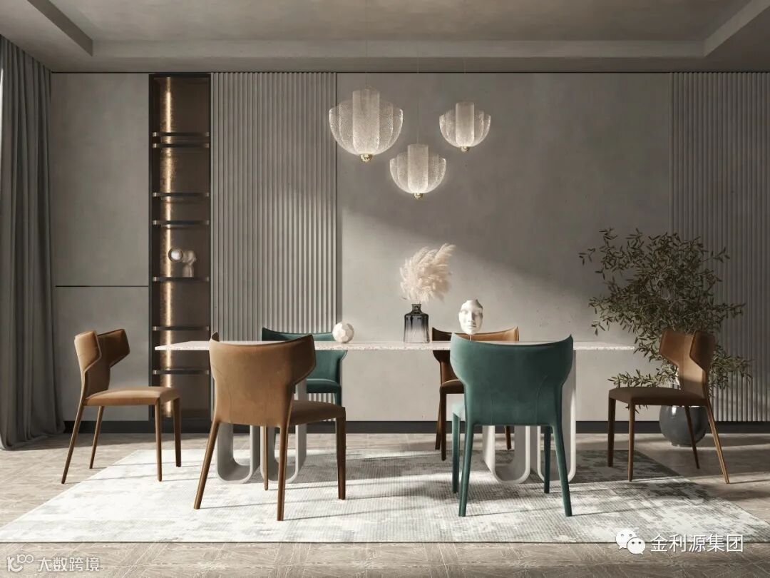 对于户型狭长的餐厅而言,可选用长方形餐桌,利用空间的优势,扩大餐桌容量。