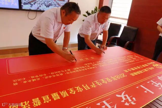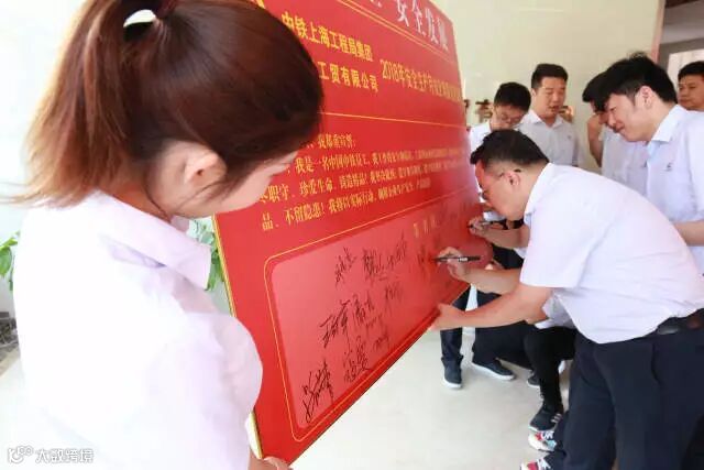 宣誓职工在安全誓言下庄严签名承诺
