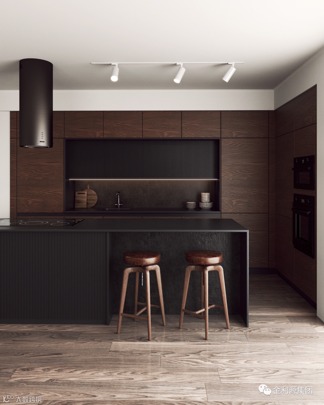 厨房空间中的柜子一般以橱柜的形式出现,入墙式橱柜除了内部构造设计,还可以与空间融为一体,扩宽空间。