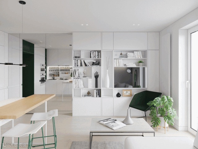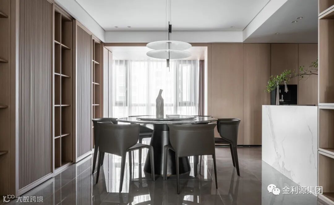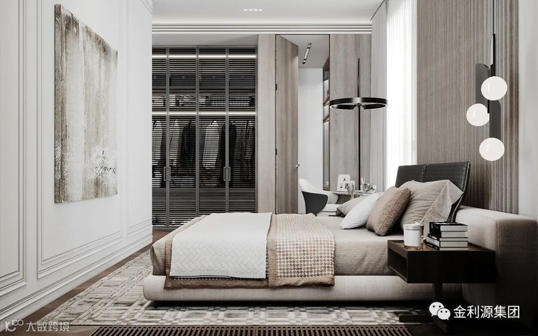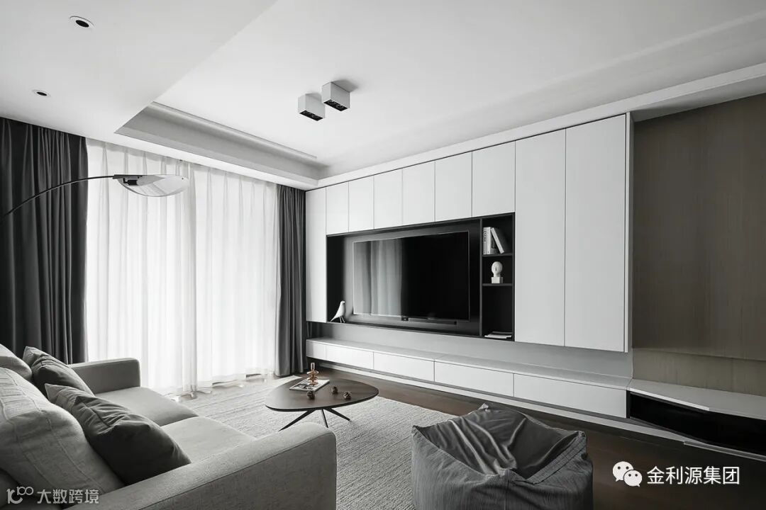 把柜子与空间硬装合二为一,让柜体装进墙体里的视觉感,整体外观也是更加简洁大气,带来一种舒适大气的视觉感受,可以提升空间的档次与简约气质。