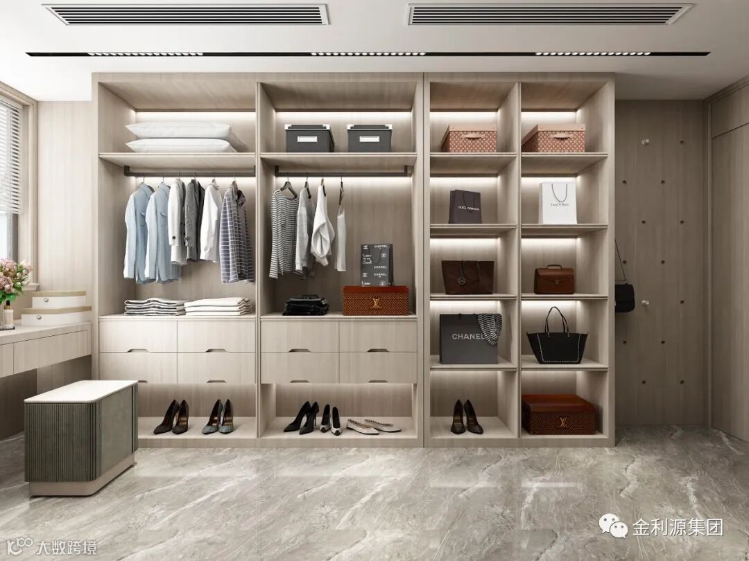 如果你对自己的物品分门别类的能力充满自信,那么开放式衣帽柜充满落落大方的爽利气质一定很适合你。不管是参加聚会,还是平日外出,试衣多样搭配,顺捷归位畅快不在话下,再也不为试衣而发愁。