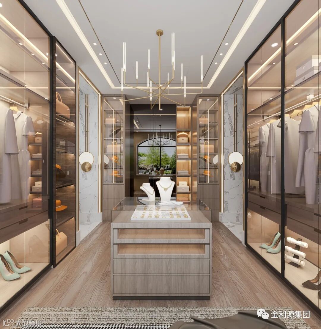 玻璃衣帽柜拥有合理的分割布局,一目了然又防尘,展示自我的同时,也能更好的提升功能性,防尘便捷两不误。