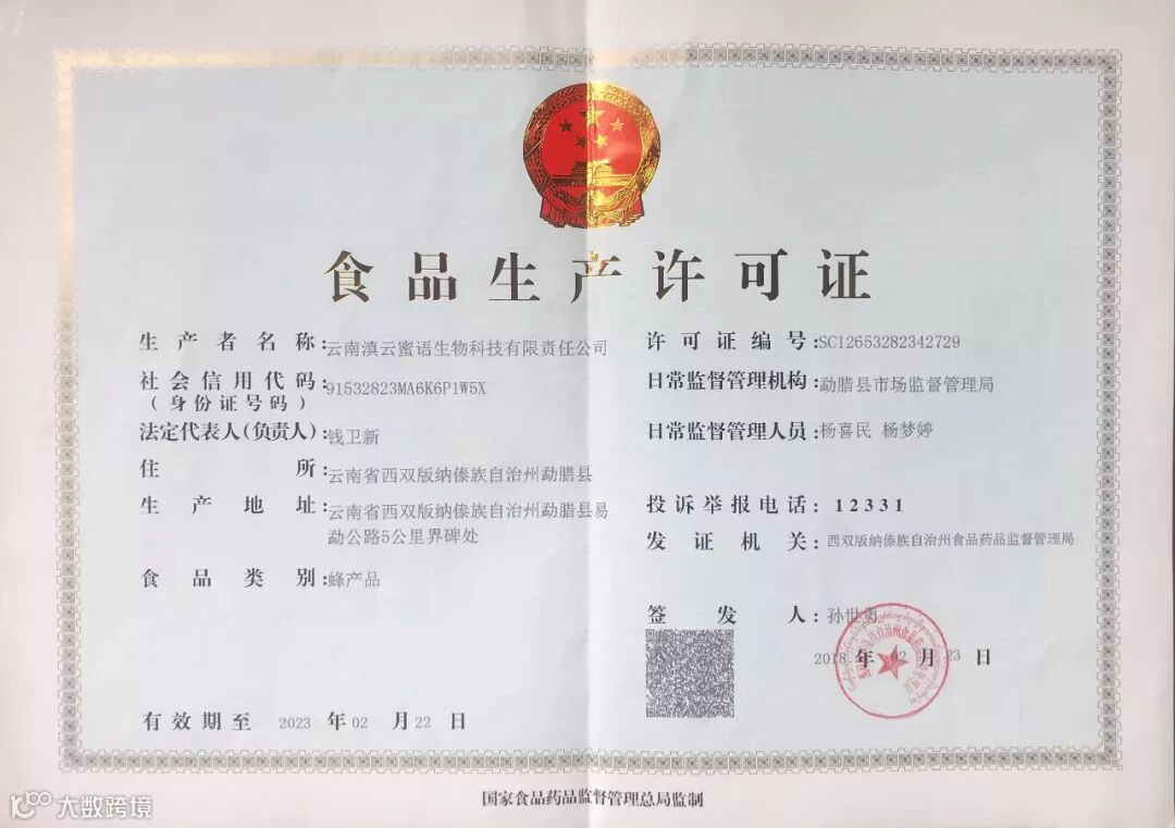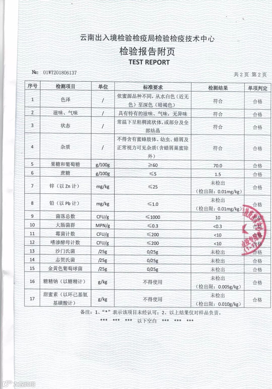 滇云蜜语严选后产出蜂蜜的质量检测报告
