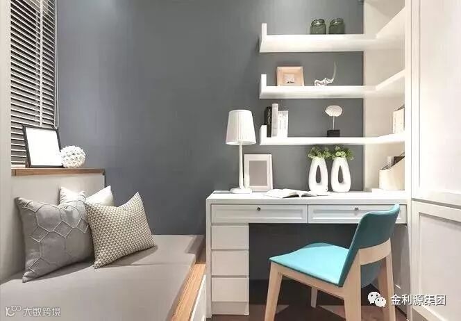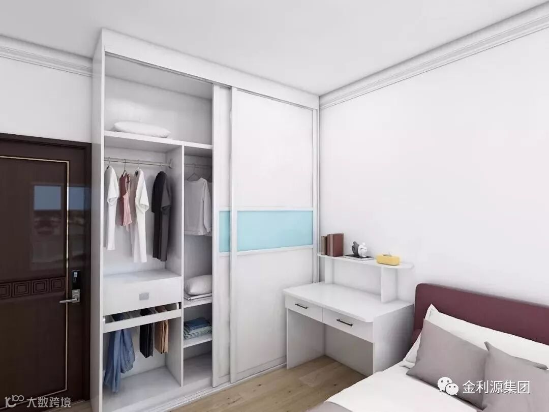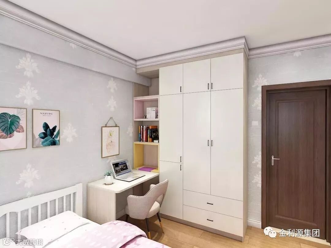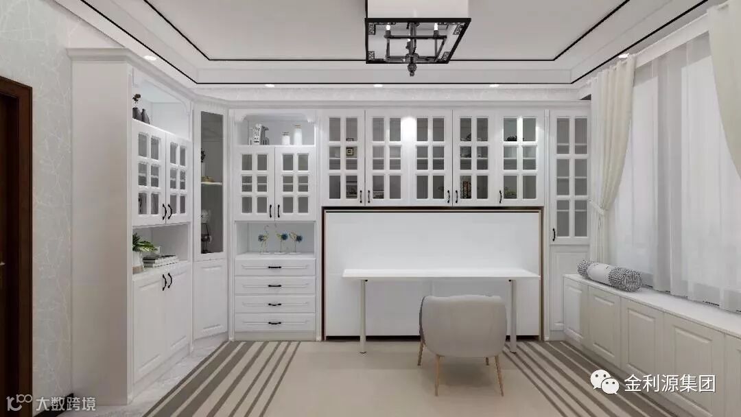 想在卧室里办公,又觉得单放一张办公桌太占空间,那么金利源这款衣柜和书桌的组合定制,绝对是你的最好选择。既最大化地提高了空间利用率,还保证了空间风格的统一性。