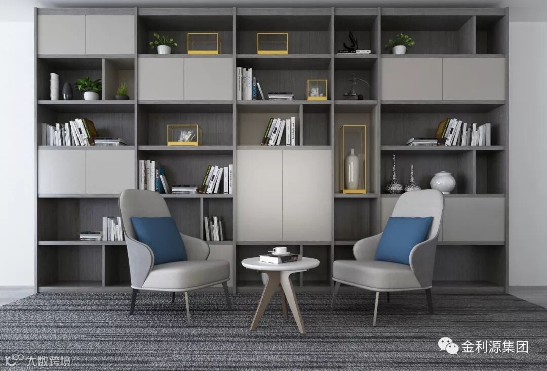 金利源人性化的格局设计,把功能使用放在创意的前一位,满足所有的储物需求。强调书柜功能的设计精神,把功能使用放在创意的前一位,使功能与形式结合。