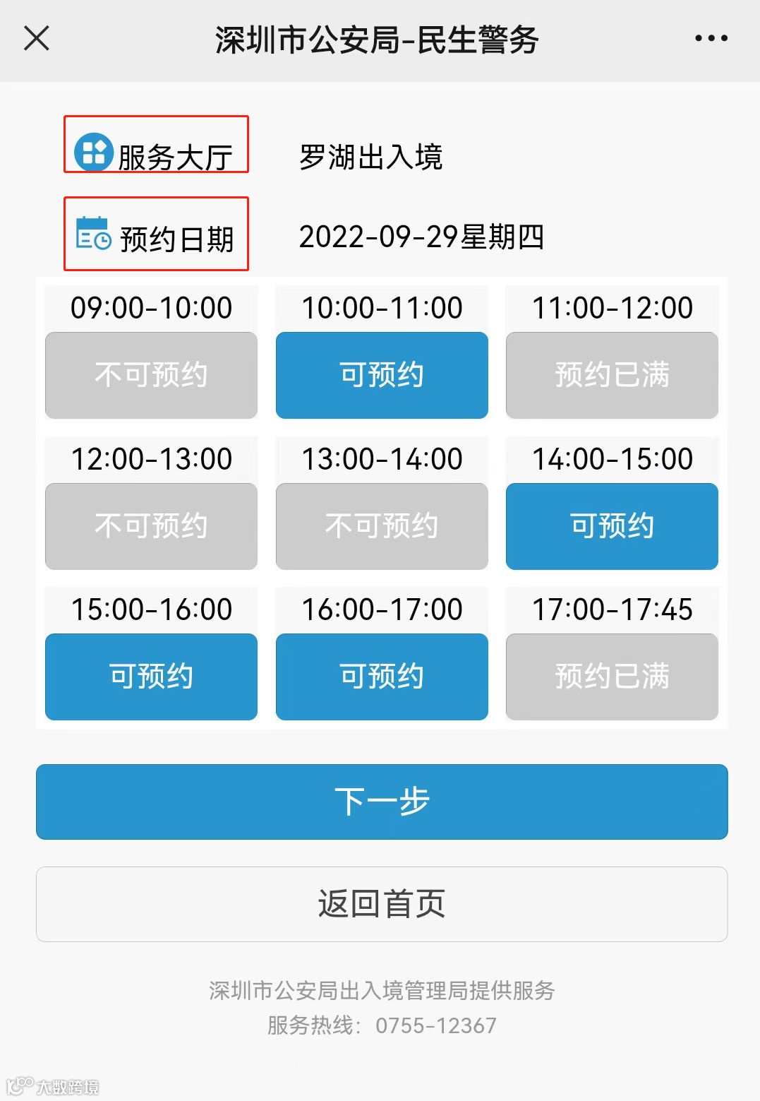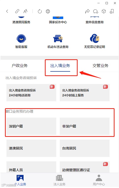 预约可以在深圳公安官方公众号中预约,选择出入境业务,非深户选择“非深圳户籍”;然后会进行人脸识别认证,通过后尽可以进行时间和办证大厅的选择。