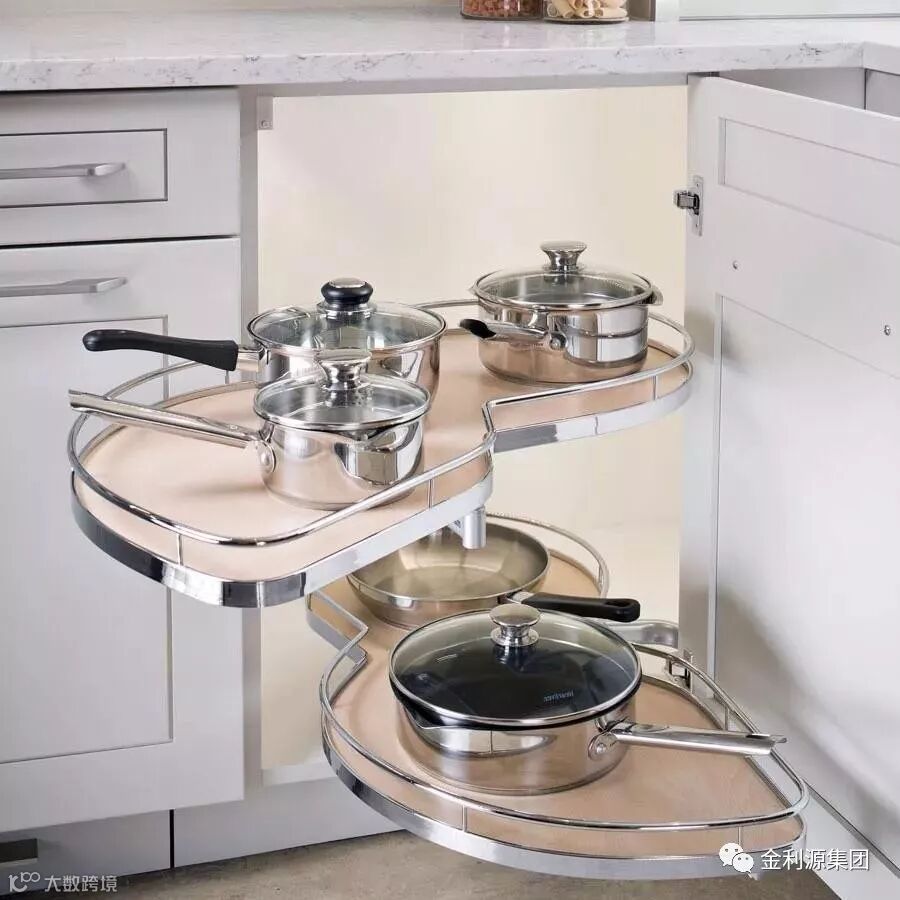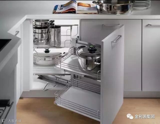 橱柜中最难利用的转角柜,金利源通过旋转拉篮和转角拉篮就完美利用起来,不但拿东西更轻松,连打扫卫生也不再成为一种困扰,轻松解决转角柜的脏乱差难题。
