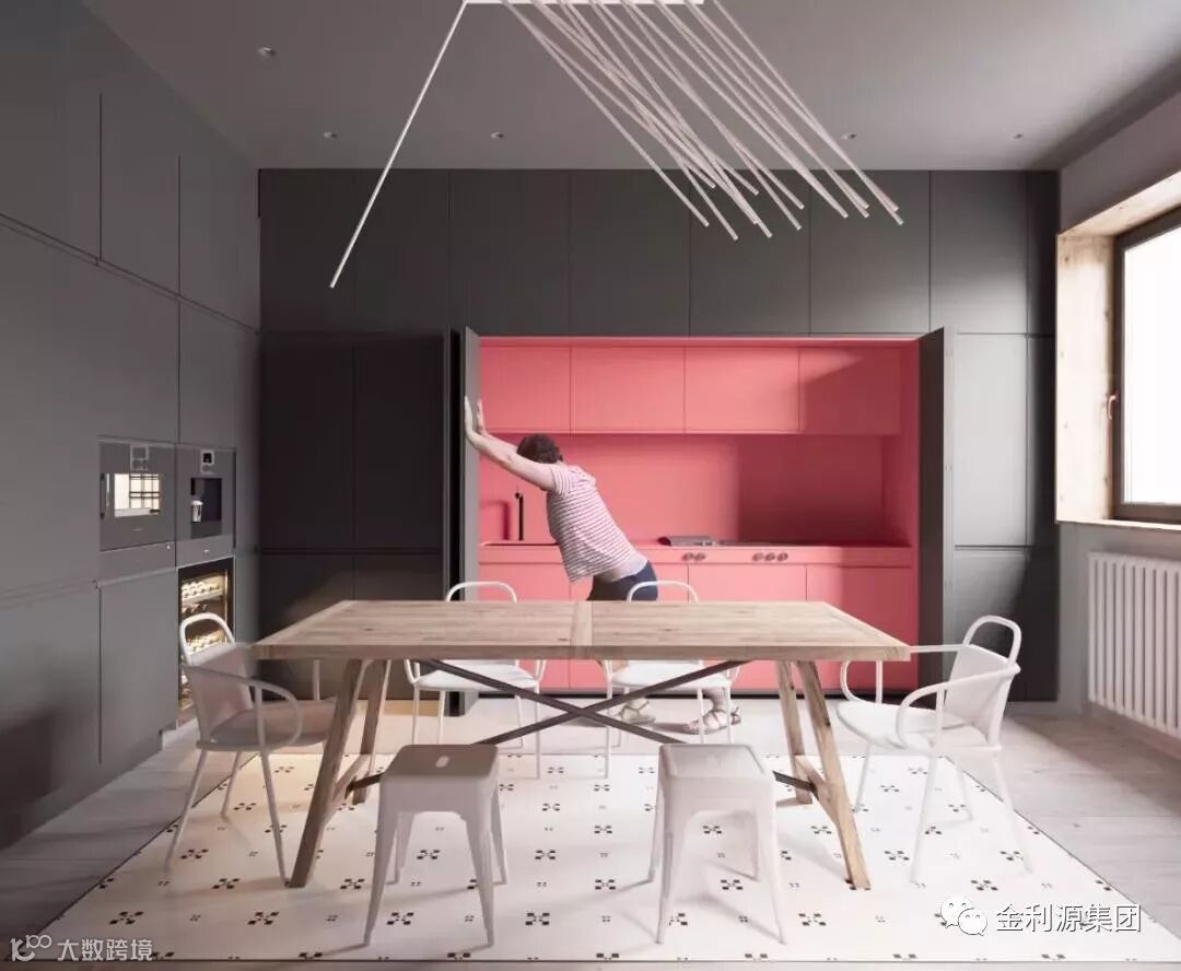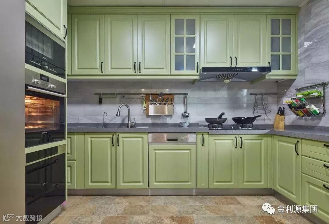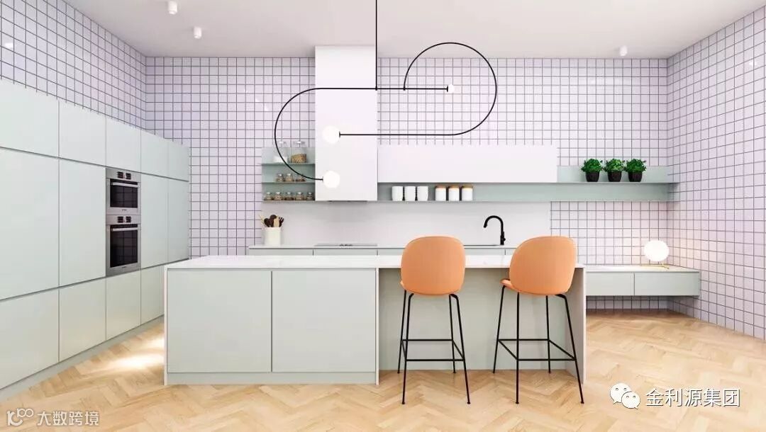 金利源采用无手把橱柜,造型简洁,不加多余修饰,不但可以起到“净化”视觉的装修效果,而且兼具简约时尚的气质,绝对是极简主义者的不二之选。