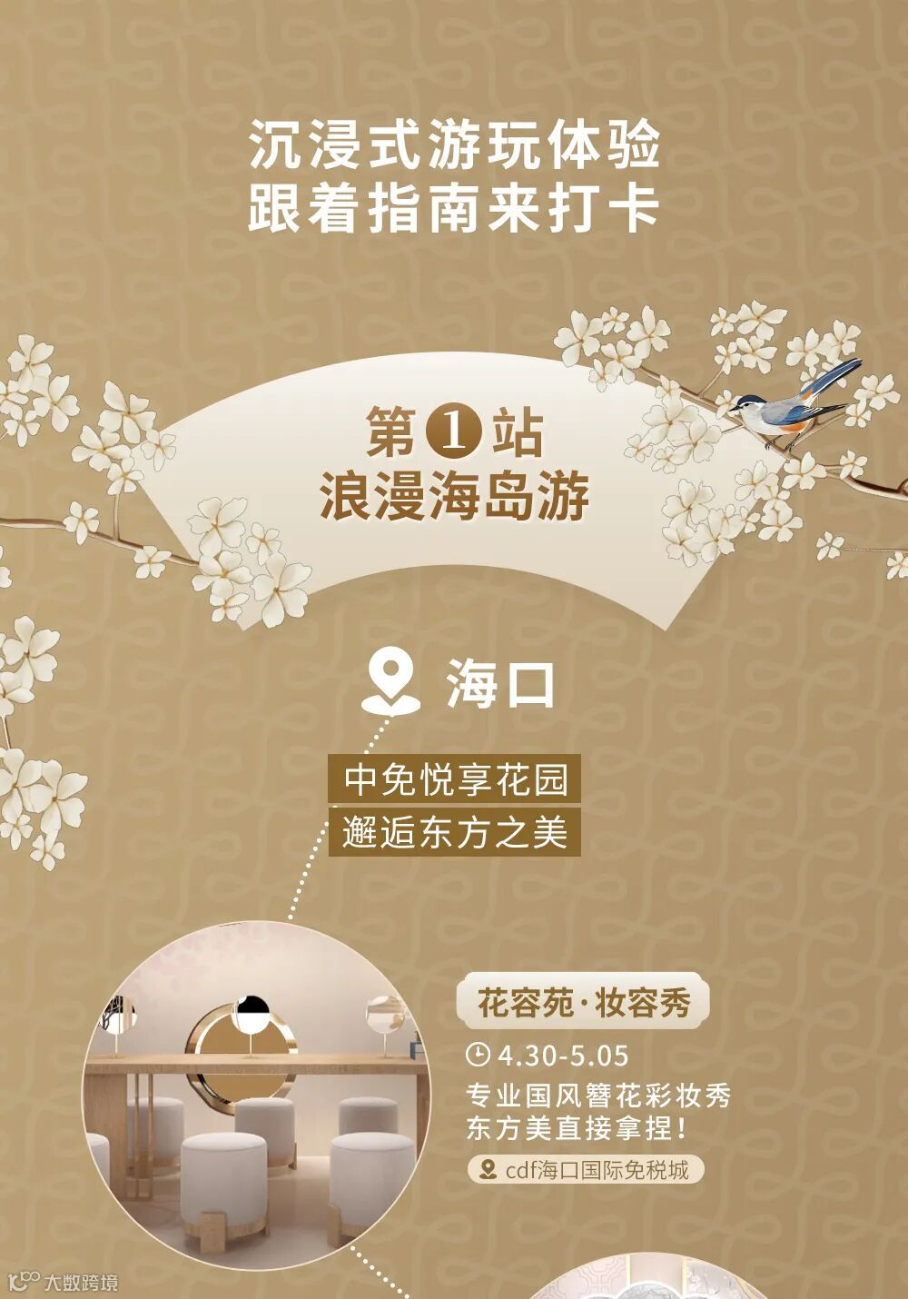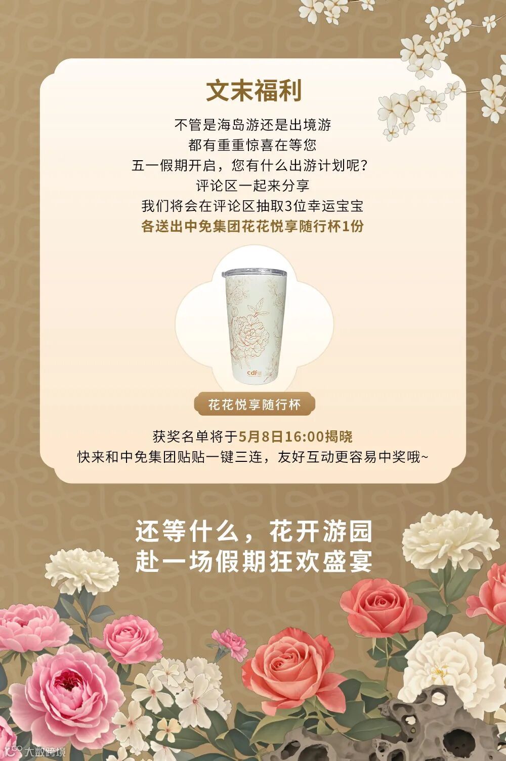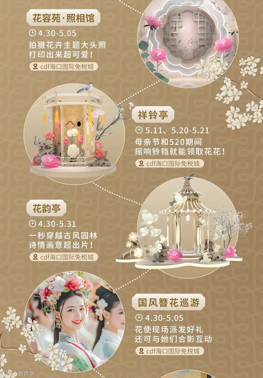 导读:全品类精选品牌五倍积分狂欢!打卡中免悦享花园,沉浸体验簪花妆容,簪花巡游,五一惊喜一触即发!