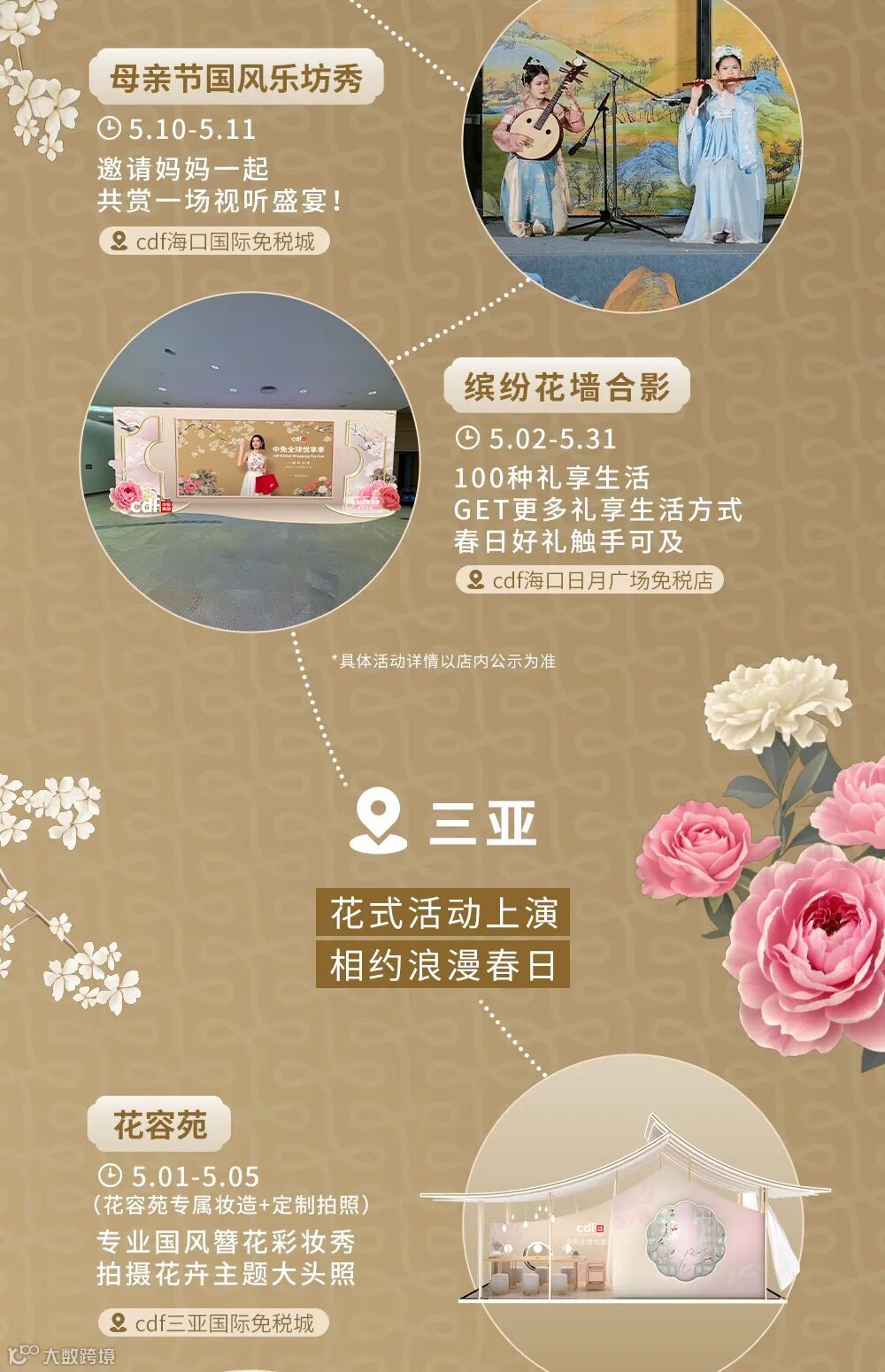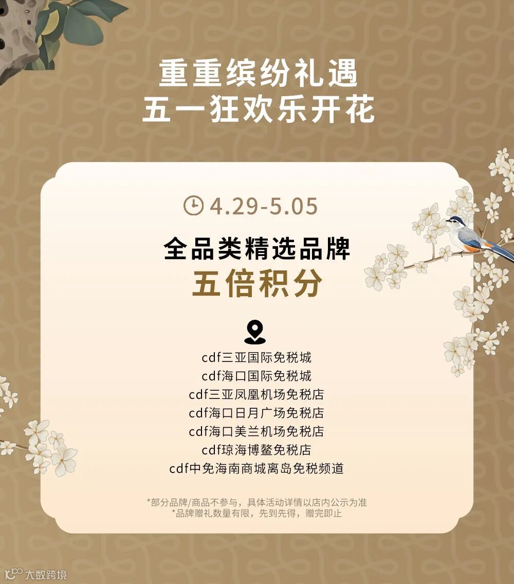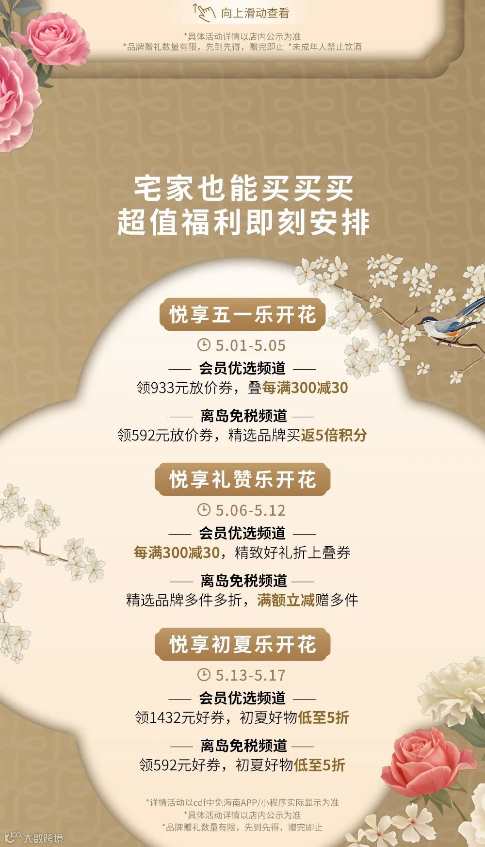 导读:全品类精选品牌五倍积分狂欢!打卡中免悦享花园,沉浸体验簪花妆容,簪花巡游,五一惊喜一触即发!