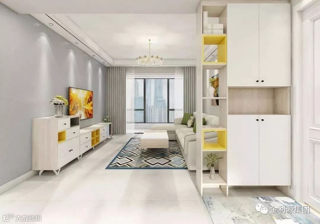 开门见厅的户型,屋里的一切容易被一览无余,玄关柜的加入可以起到隔断作用,保护客厅的私密性。