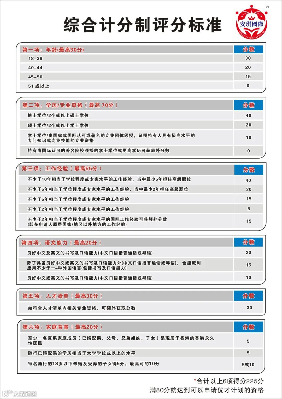 答:目前及格分是80分,但是会不定期更改,达到及格分即可递交申请,但是不保证能获批,因为香港优才是一项设有配额的计划,得分较高的申请将会进一步评核。委员会也会考虑香港社会经济需要、申请者所属界别及其他相关因素。我司建议120分以上者申请,获批的机会比较大。