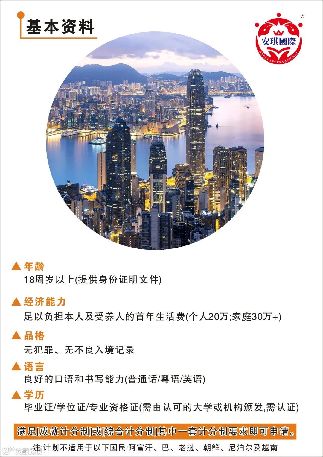 财政要求:申请人必须证明能独力负担其本人及受养人(如果有)居港期间的生活和住宿,不需依赖公共援助,通常为10万/人以上。