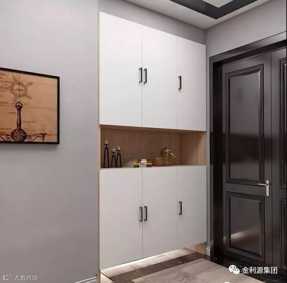 中间部分采用了镂空设计,用绿植、香薰、相框、嵌入式灯带等凸显装饰性能,是非常实用的选择,让每天进出家门的你都有一份好心情。