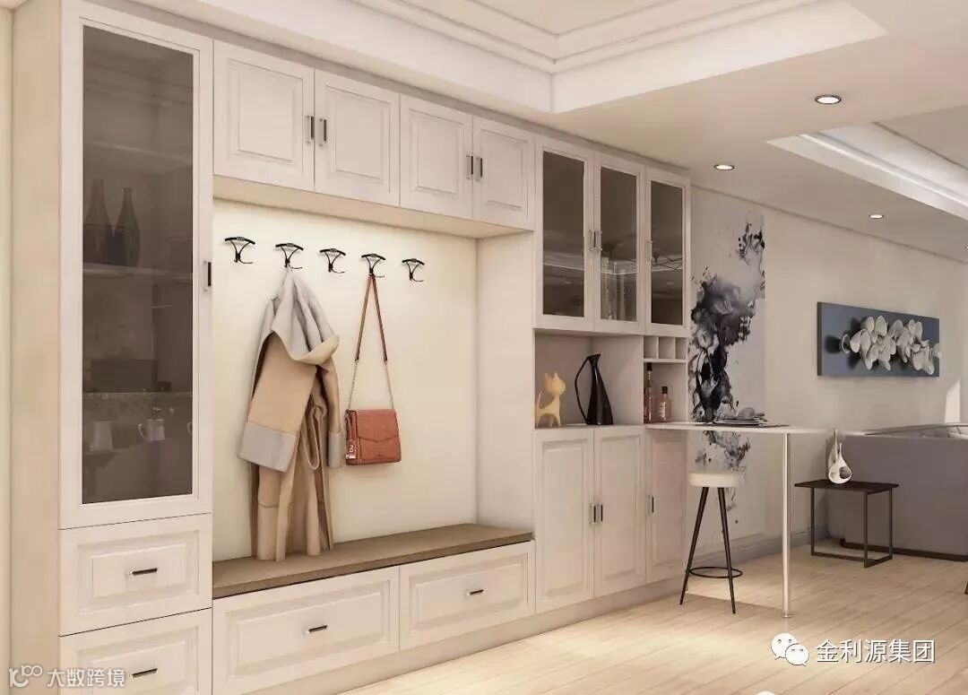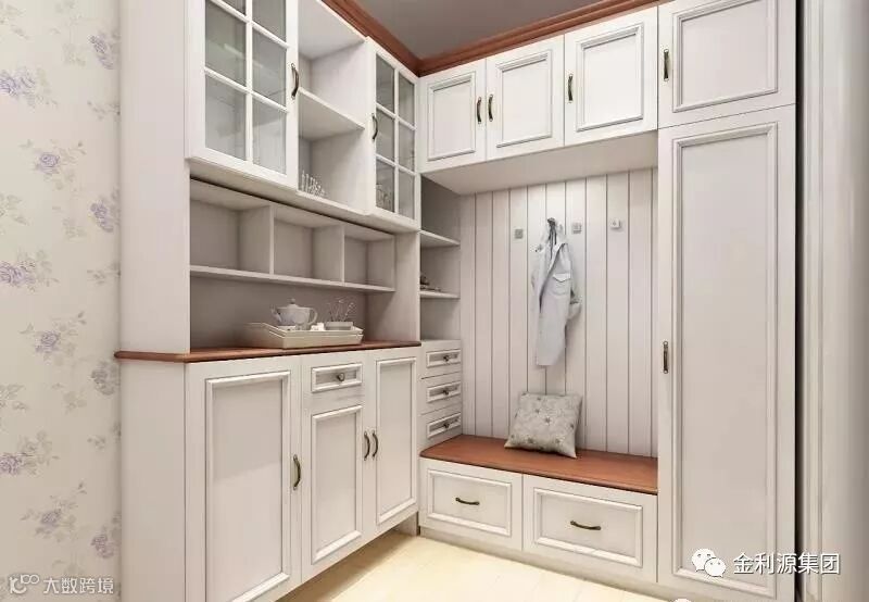 壁柜的深度可以设置在 350mm—400mm 之间,上方用于储物,下方便于换鞋,如果拥有足够的走道空间,也可以达到 400mm 以上。