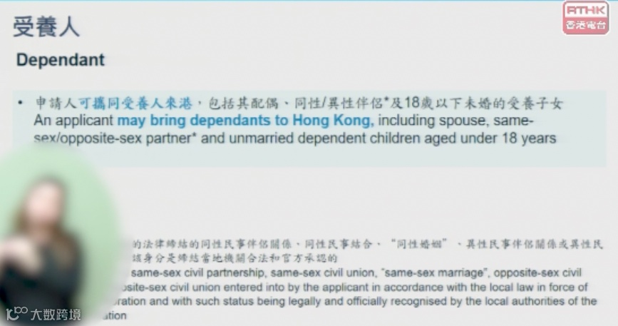 合资格申请人包括18岁或以上的外国国民、中国籍而已取得外国永久性居民身份人士、澳门特区居民及台湾华籍居民。申请可携同受养人来港。申请人可以访客身份在港逗留不多于180天,以作投资,其后会按“2+3+3”年模式处理正式批准、延长逗留期限等流程,并在第7年可申请成为香港永久性居民。