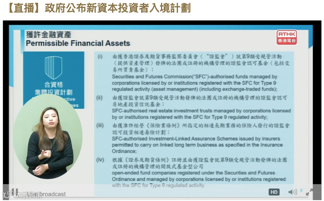 新计划下,申请人需要有不少于3000万港元净资产,其中至少300万港元需投资于创新及科技行业或重点行业,预计明年年中接受申请。