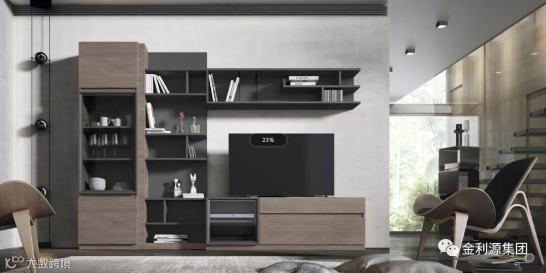 电视背景墙只用来装饰电视,就太浪费了。想兼顾好看又实用,金利源可以为客户量身打造。在墙上打上一整面柜子,什么都能往里放,如果觉得挤得慌,就放一排矮柜,直接让你家扩容!