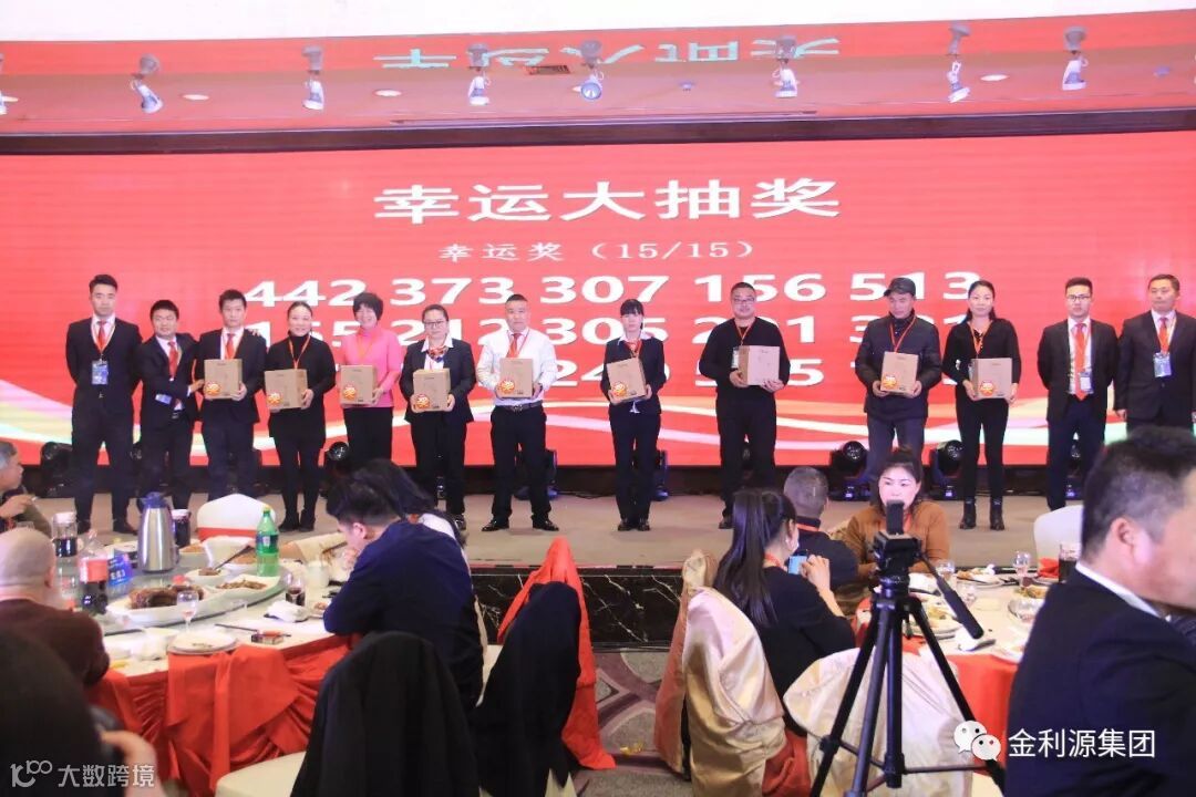 华彩绽放,杯酒言欢,一场汇聚歌曲、舞蹈、民俗曲艺、东北二人转等精彩节目的金利源晚宴正式开启。金利源董事长金国君率高层上台向大家敬酒。同时节目中穿插红包和抽奖环节,将晚宴的气氛推向一个又一个高潮,现场掌声与欢呼声此起彼伏。