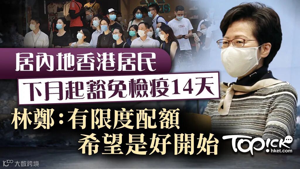 林郑提到,会下月率先安排居内地港人返港豁免检疫14天,但开始时会有配额,希望这是一个好开始,让两地人员更加顺利往返,到相关措施成熟推出时,相关局长会详细交代。