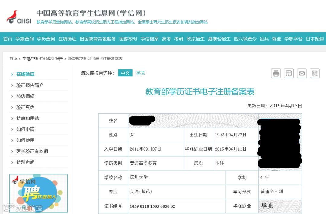 我们在求职招聘、派遣接收、升学(考研、专升本)、留学、干部任免、职称评定、信用评估时,这份报告代表我们已经通过权威的学历认证。这份文件的申请时间10-15分钟。