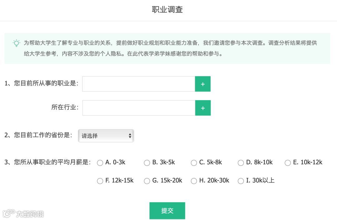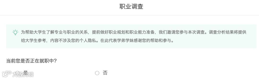 接下来,点击《教育部学历证书电子注册备案表》,页面会转到职业调查。非应届生需要做一个职业调查。