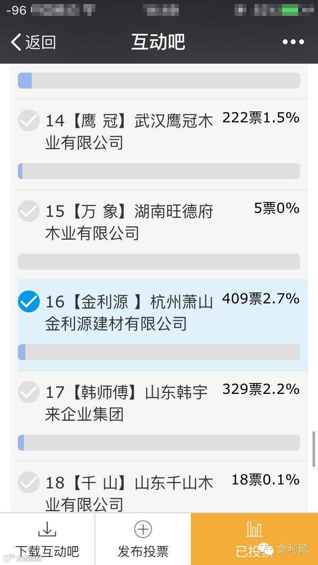 点击下方阅读原文打开链接,在最下方的投票区域,找到第16编号“【金利源】杭州萧山金利源建材有限公司”,为我们投上您神圣的一票。