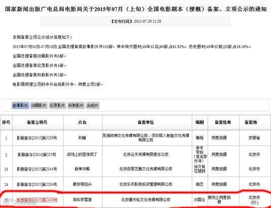 刘震云《我不是潘金莲》 更名 《我是李雪莲》 立项,2015年7月上旬备案。