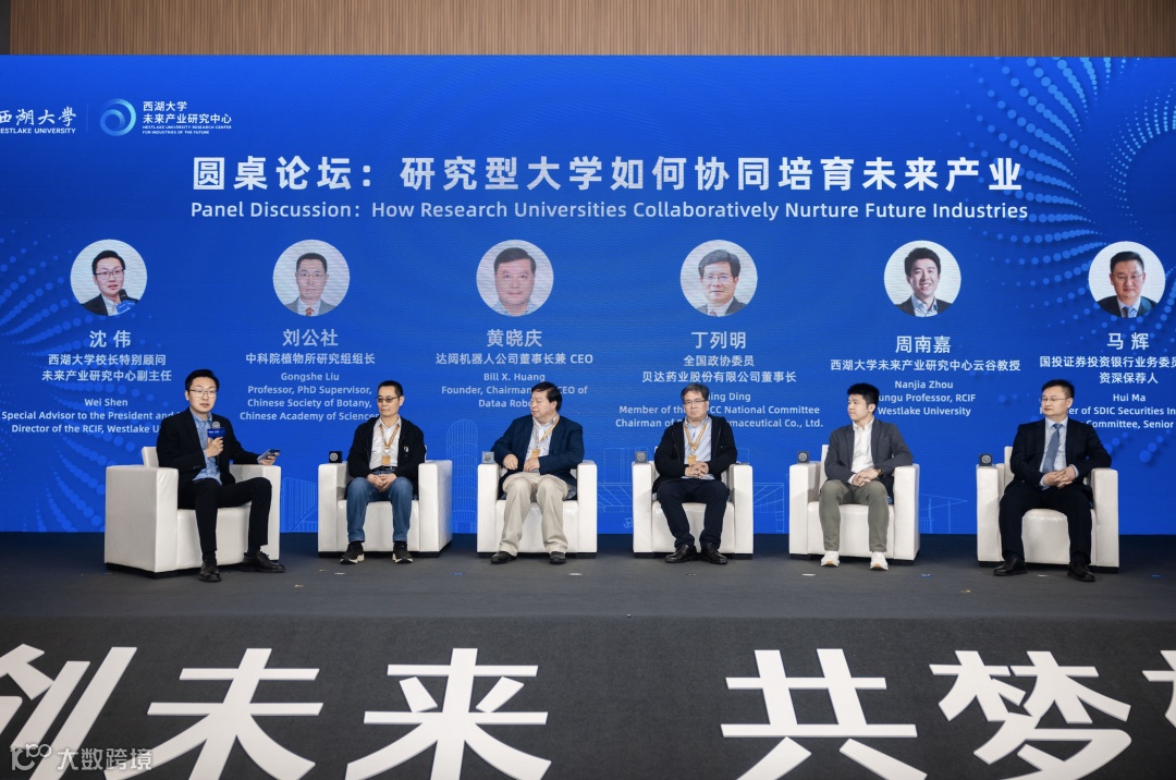 最后,围绕“研究型大学如何协同培育未来产业”这一主题,全国政协委员,贝达药业股份有限公司董事长丁列明,达闼机器人公司董事长兼CEO黄晓庆,中国科学院植物所研究组组长刘公社,西湖大学工学院助理教授周南嘉,国投证券投资银行业务委员会委员、资深保荐人马辉等展开圆桌讨论,国投科创总经理沈伟担任主持。