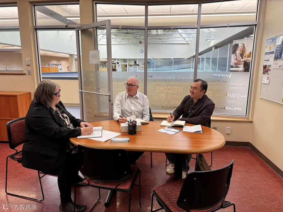 COTR国际教育负责人Larissa Strong(左一)与AQG项目负责人Randy(中)和Arthur(右一)会议中