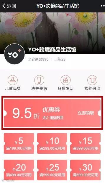商城首页领取优惠券,享全场商品95折