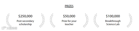 该奖项包括25万美元的奖学金,10万美元赞助兴建她高中的科学实验室,5万美元奖励给她的启蒙导师。这笔钱总计约50万加元。