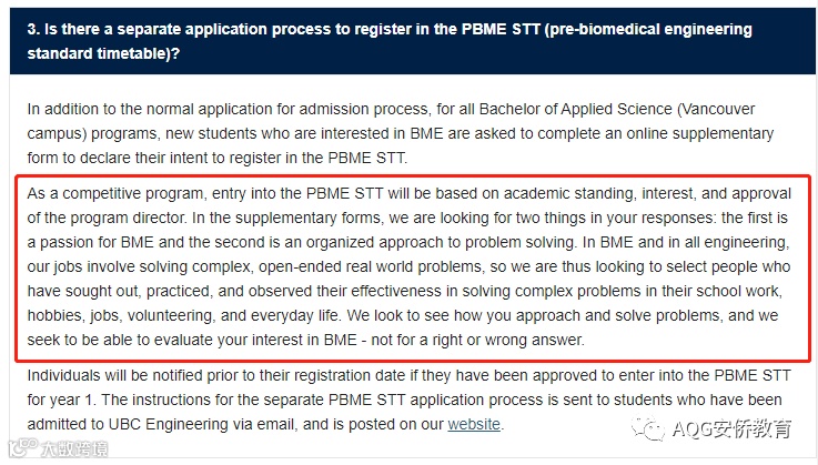 UBC的Pre-Biomedical Engineering项目的招生FAQ里就道出了甄选的核心条件: