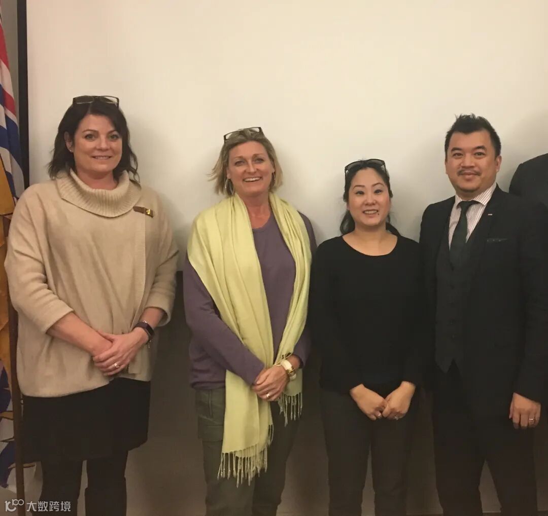 海天教育局局长Lisa McCullough(左二)、原海天教育局助理局长、现温哥华教育局助理局长Jody Langlois(左一)与AQG顾问Arthur(右一)、Wendy(右二)