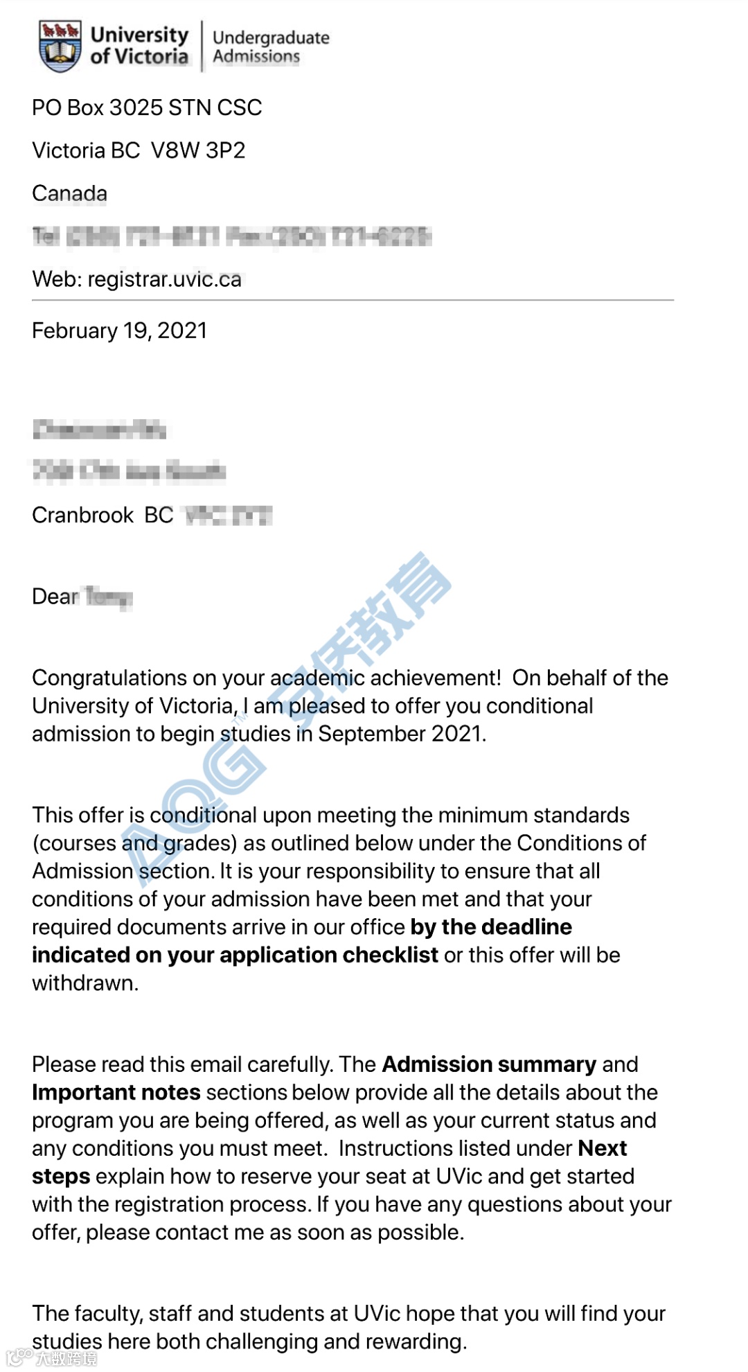 最终,在两年的college生涯里,我70%的课程拿到了A(有部分是重修后的成绩),30%的课程拿到了B;我也已经在今年递交了转学申请,再次冲击名校,目前我已经拿到了维多利亚大学(University of Victoria)的offer。