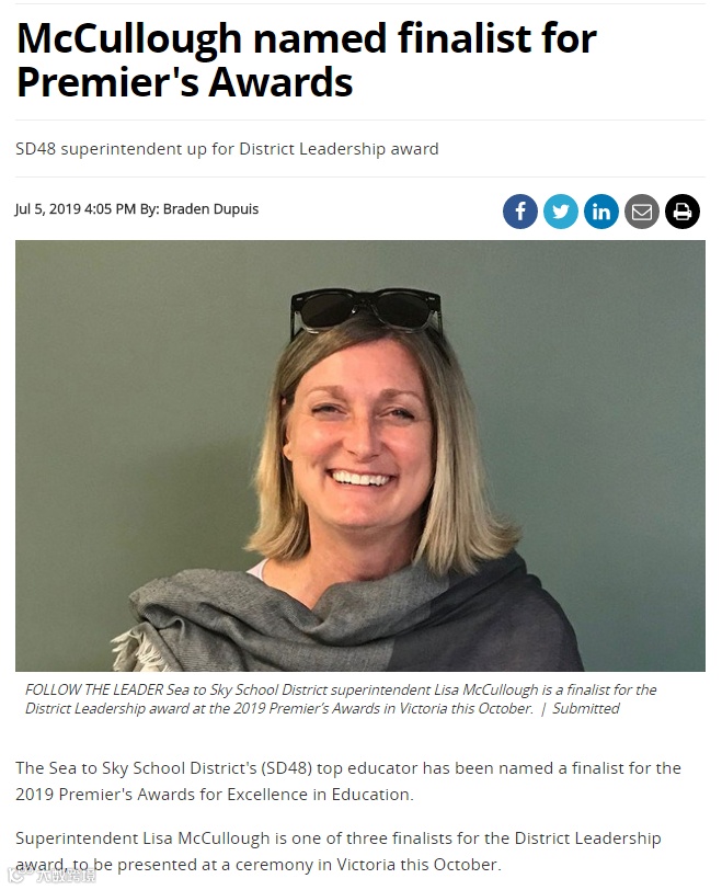 海天教育局局长Lisa McCullough因原住民教育杰出贡献被提名2019年加拿大总督奖