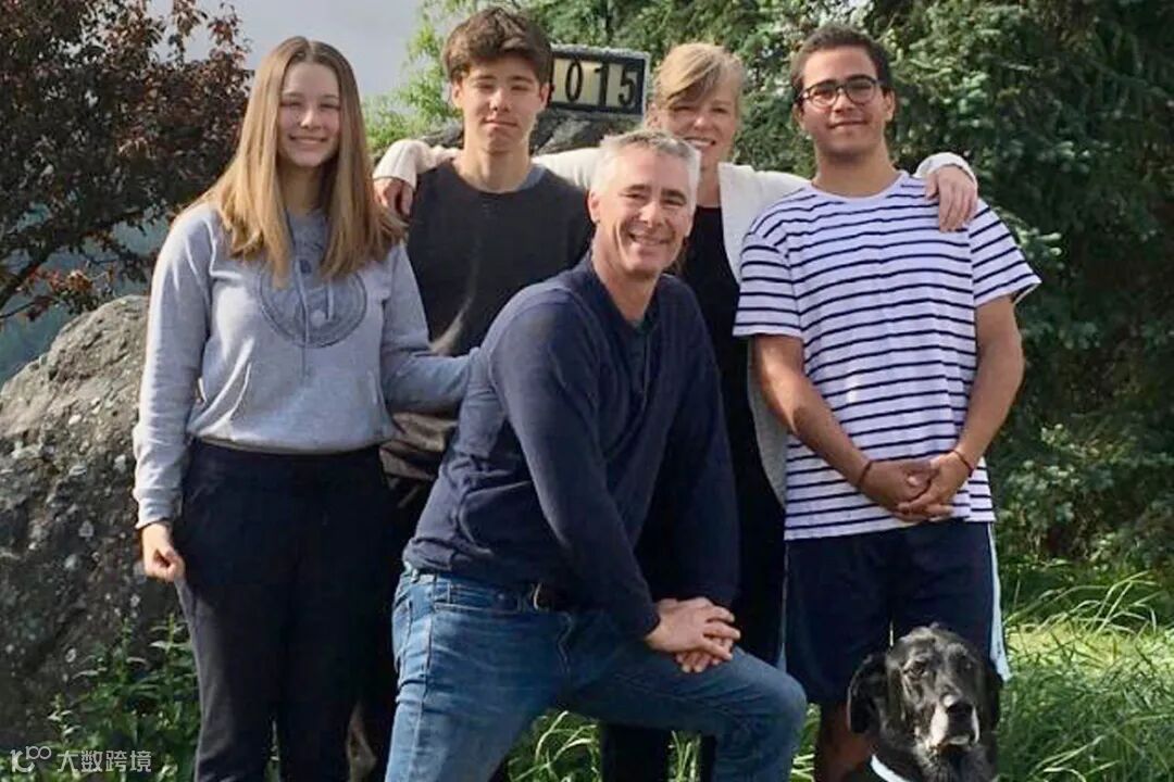 过去五年里,Angel Stuyt和她的家人一直在接待国际学生。最近的一位是来自西班牙的Nacho Ignacio。从左到右Ella Gotzy, Alex Gotzy,Stuyt, Ignacio。前排: Lance Gotzy.