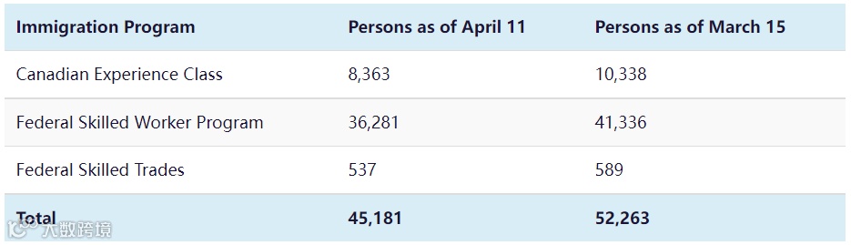 快速通道(Express Entry)的申请积压略有减少。4月份申请人超过4.5万人,3月份是5.2万人。