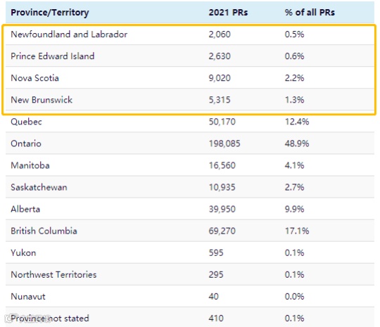 大西洋四省作为一个整体,其新移民主要是来自大西洋四省移民计划,即大西洋省雇主担保移民。