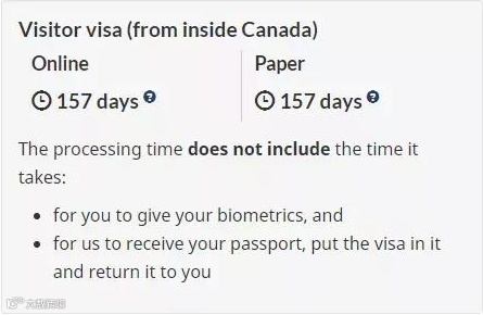 从加拿大境内申请访客签证的审批速度需要157天。