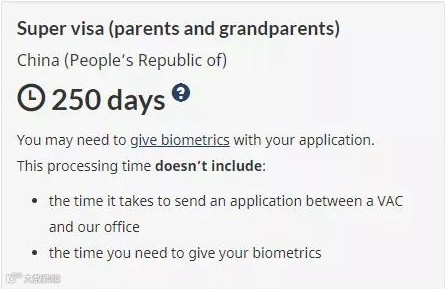 从中国为父母及祖父母申请加拿大超级签证需要250天。