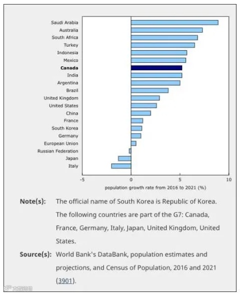 依靠移民成功成为G7国中人口增长率最高的国家,优质人口增长的优势也直观的反应在了数据上。