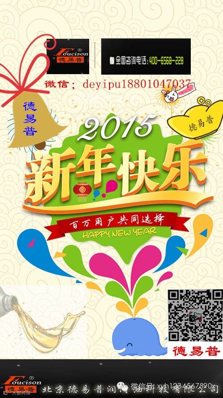 导读:北京德易普润滑油领导及全体员工祝愿国人2015新春快乐!生意兴隆!