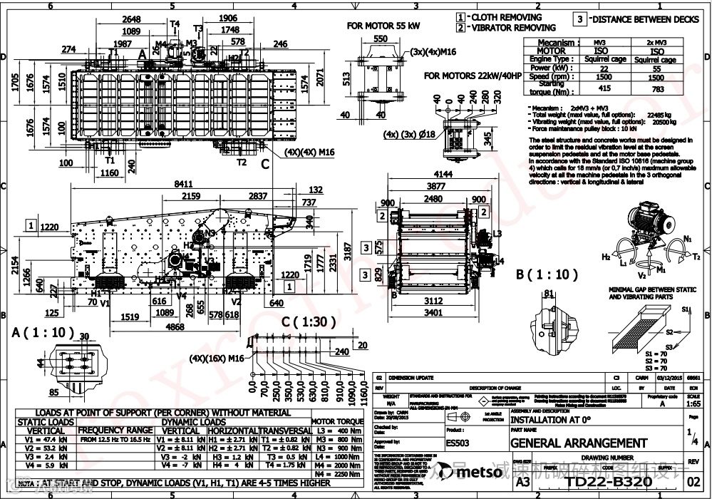 Mesto美卓ES™系列水平振动筛图纸ES202/203/302/303/402/403/502/503