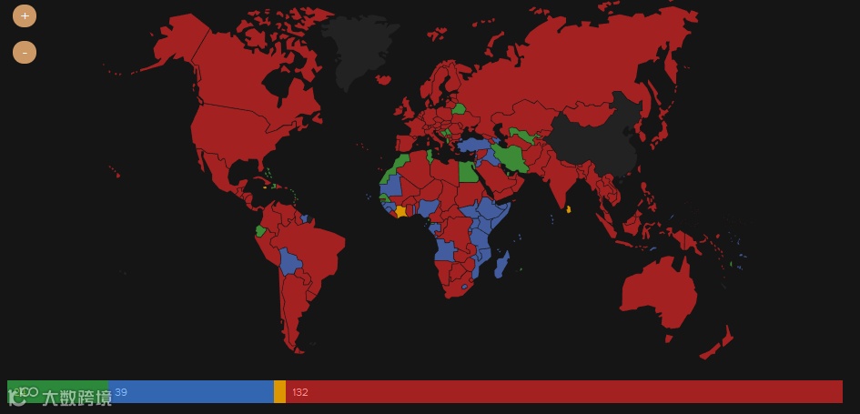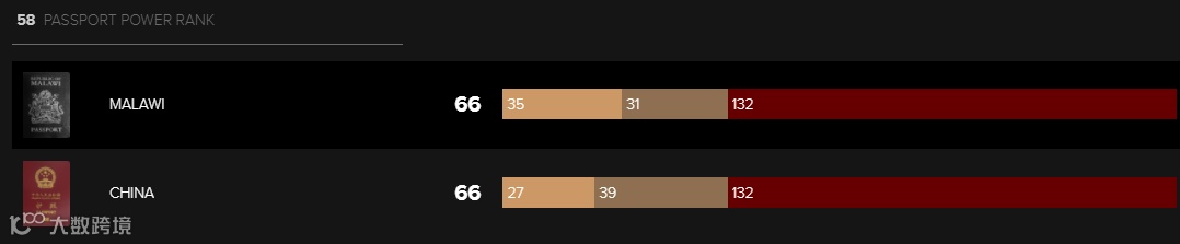 当然也不能少了我们的中国护照,目前我们以免签+落地签共计66个国家排在No.58位。中国护照多集中在非洲与亚洲,通往欧美多数国家还是需要申请签证的。