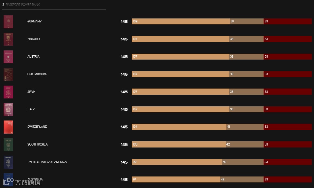 那么全球护照的TOP 10花落谁家呢?